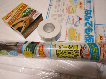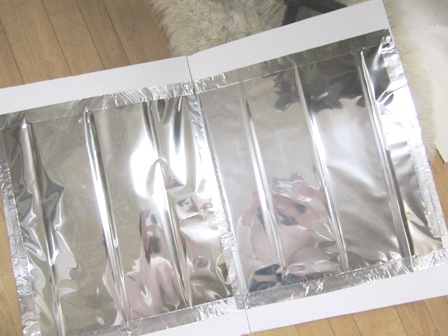 キッチン用アルミシートをアルミテープで貼ったもの。